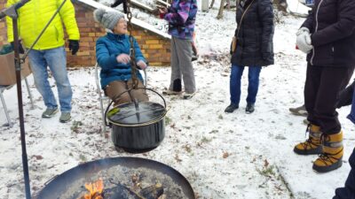 Ein Glühwein an der Feuerschale Essen an der Gullaschkanone ein Weihnachtsstern ein liebevoll eingerichteter Saal mit Tannenbaum, Kerzen, bunten >> mehr