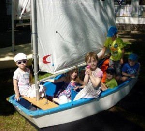 Am 22.05.2014 besuchte uns eine Kindergartengruppe aus Eichwalde. Es waren etwa 35 Kinder, die ältesten waren gerade erst 6 Jahre alt. Wilfried Lippert und ich stellten einen Laser und einen Opti auf die Wiese. Die Kinder nahmen die Boote sofort an. Es war für sie ein Vergnügen, mit den Schiffen zu spielen, denn mit dem eigentlichem Segeln haben diese Kleinen noch nichts am Hut. Heidi Faust und Nina Saupe hatten Kuchen gebacken, Regina Reddigau sorgte für Getränke. Kurzum, es waren viele Vereinsmitglieder mit den Kindern beschäftigt. Wenn wir Glück haben, erzählen es die Kleinen ihren größeren Geschwistern, wie schön es in unserem Verein ist. Völlig aufgedreht gingen sie nach 2 Stunden nach Hause. Es war ein schöner Tag für uns und die Kinder.