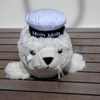Und dann der Höhepunkt: Wir liegen direkt vor dem ehemaligen „Seehund“, das Restaurant ist zu und wird saniert. Die Elektriker sind gerade dabei, einiges in den Müll zu entsorgen. Dabei ist der Original-Seehund vom Restaurant, den wir retten. Er wird unseren weiteren Törn als Maskottchen begleiten.