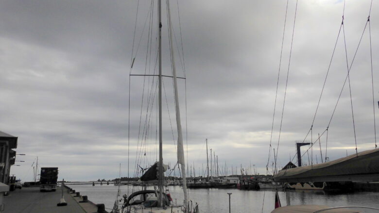 Hui, war das ein Segeltag!!! 9:15Uhr legen wir ab, Wind kommt genau von vorn, also müssen wir 2,5sm mit dem Motor aus dem Hafenbereich und der engen Fahrrinne fahren. Ab 9:50 Uhr Großsegel (1xgerefft), nach 1h die 2xgereffte Fock dazu. Der Wind kommt aus West mit 16kn. Gegen Mittag nimmt er auf 20 bis 22kn zu, Großsegel muss noch 1x gerefft werden. Wir haben die Wismarer Bucht, in der wir Kreuzen mussten, hinter uns und kommen jetzt in die Mecklenburger Bucht. Hier können wir mit einem Schlag hoch am Wind mit einem Speed von ~8kn bis kurz vor Fehmarn segeln. Wellenhöhe rund 1m. 15:00 Uhr dreht der Wind auf Nord und nimmt auf 10kn ab, also Fock ausreffen und Groß ausschütten. So lässt es sich noch1½h gut kreuzen, bevor wir 16:30 Uhr die Segel bergen und mit dem Motor die Fahrrinne nach Burgstaaken fahren. Ursprünglich wollten wir nach Burgtiefe, da der Nordwind aber sehr in die Marina pfiff, sind wir lieber in den Stadthafen gefahren. Im „Goldenen Anker“ war lecker Fischessen angesagt und auch sonst war der Abend angenehm warm und gemütlich.