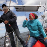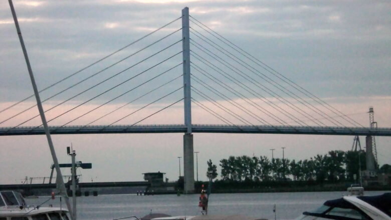 Ganz in Ruhe frühstücken und ablegen, wir haben es nicht weit. Im Hafenbereich setzen wir das Großsegel und der Motor kann aus. Zuerst mit Groß und ab dem Knick Fock 2x gerefft dazu. Und ab geht es in „Rauschefahrt“, mal hoch am Wind, mal etwas raumer bei Wind aus WSW mit 14kn immer mit mehr als 9kn Speed. Schon in 2¼h sind wir vor der Einfahrt von Stralsund und legen in der City-Marina an.