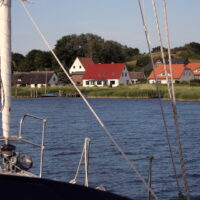 Da wir noch einiges erledigen wollen (noch 1 Waschmaschine, Gasflasche kaufen, Tanken), nehmen wir die Brücke 12:20Uhr. Nachdem wir aus dem Wuling mit den anderen Booten raus sind, setzen wir unsere Segel und kreuzen im Strelasund bei Wind aus SO mit 10kn. Es ist ziemlich böig, macht aber Laune. 14:10 Uhr queren wir die Fährverbindung Stalbrode/Glewitz und sind dann bald auf den Bodden. Es ist leicht bewölkt, der Wind kommt weiter aus SO, wir entscheiden uns für Seedorf. Gegen 16:30 Uhr erreichen wir die Having, links und rechts Felder, Wälder, grüne Wiesen und vereinzelt Häuser. LT ist 22°C, WT 19°C. Nach einer ½ h werden die Segel geborgen und mit dem Motor geht es in die flache Einfahrt nach Seedorf. Dort müssen wir einige Kreise drehen, um einen Stand zu finden, der breit genug für uns ist (Stand 34). Liegegebühr hier 10€, für den 2. Tag kommen noch 2,60€/Person Kurtaxe dazu. Dafür kann man u.a. die Busse in der Umgebung benutzen. 27sm liegen heute hinter uns, wir gehen im Ort noch etwas spazieren und genießen die Idylle.