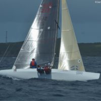 Wieder müssen wir einem Frachter und der Fähre in der Fahrrinne ausweichen, setzen das 2x gereffte Groß im Hafenbereich und die 2x gereffte Fock hinter dem Molen-Leuchtfeuer. Das militärische Sperrgebiet ist heute nicht zu beachten, wir können quer durchsegeln. Wind kommt wie vorhergesagt aus West, nur etwas stärker, in Spitzen messen wir 27kn, sonst sind es fast immer über 20.