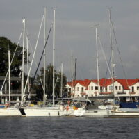 Es ist drückend warm und diesig. Wind mit 3kn aus NO. Wir versuchen es trotzdem mit Segeln, da unser heutiges Ziel Darlowo nur 22sm entfernt ist. Mit etwas Strömung kommen wir mit ~3kn in Richtung 250° voran. Als wir uns schon fast für den Motor entscheiden wollten, nimmt der Wind auf 6 bis 7kn aus NW zu, raumschots kommen wir so mit mindestens 5kn voran. Die Brückenöffnung 15:00Uhr in Darlowo erreichen wir, so dass wir 10 min später in de Marina anlegen können. Fast 6h haben wir heute gebraucht.