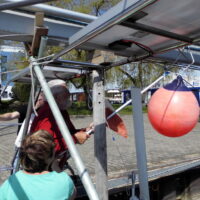 17.5.: Wir können uns Zeit lassen, der Hafenmeister kommt erst um 10:00 und dann sind wir das 2. Boot zum Maststellen. 11:00 Beginn, 11:30 Ende – dieses Mal ging es zügig, auch wenn zu Beginn noch ein kleines Missgeschick zu beheben war. Die Sonne scheint vom blauem Himmel, es ist kaum Wind – beste Bedingungen.