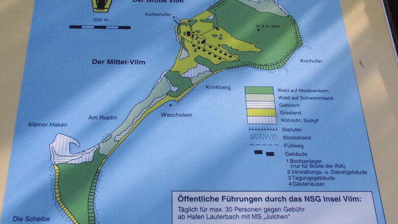 Mittag gibt’s von der Bordküche. 13:30 fahren Ines und Hillu mit „Julchen“ zur Insel Vilm und sind 2 von den maximal 60 Touristen, die täglich mit einer geführten Wanderung auf festgelegten Wegen die Insel besuchen dürfen. Ein sehr schönes Stückchen Natur, die uns begeistert. Schöne blühende Wiesen, tolle alte Bäume, Urwaldcharakter, blühender Bärlauch und viele andere seltene Pflanzen sind zu bewundern. Etwas Sandstrand gibt es, Baden ist aber nicht erlaubt. Und einen tollen Wanderführer mit Geschichten über die alten und neuen Zeiten auf der Insel hatten wir neben dem Naturgenuss auch.