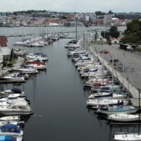 Abends ein Spaziergang zur großen Brücke über den Straumsteinsund. Von hier ein schöner Blick über Stavanger und die Steganlage des Stavanger Segelclubs. Leider fängt es unterwegs an zu regnen und hört auch die ganze Nacht nicht auf.