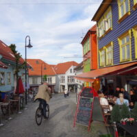 Dort liegen wir im Zentrum der Stadt und suchen zuerst die Info auf. WLAN ist im Hafen nicht vorhanden, deshalb holen wir dort die Info für Fähre und Bus zum Preikestolen und für den Bus zum Flughafen. Gleichzeitig ein Stadtbummel, im Vagen liegen 2 riesengroße Kreuzfahrtschiffe, die leider die besondere Atmosphäre verschandeln.