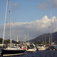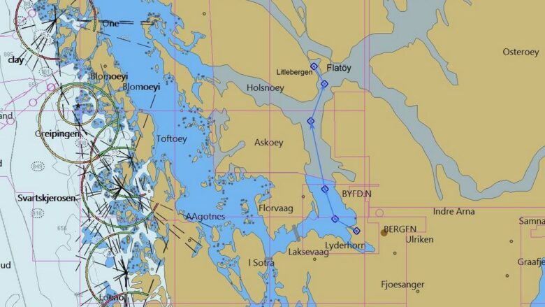 Die Wettervorhersage verspricht für heute Nachmittag Wind aus NW mit segelbaren Windstärken. Noch eine Nacht mit lauter Musik wollen wir uns nicht antun. Nach dem Mittagessen fahren wir zuerst zum Tanken, 13:40 geht es Richtung Norden, zuerst mit Motor und dann kreuzen wir den Byfjord auf. 16:30 müssen der Motor an und die Segel runter. Vor uns die 22m hohe Brücke, die die Inseln Holsnöy und Flatöy verbindet. Die große neue Brücke bleibt stb. Gleich hinter der Brücke Litlebergen (60°32,4’N 05°14,6’O), im Hafenhandbuch mit Gästesteg, den wir nicht gefunden haben. Wir liegen im abgeschlossenen privaten Bereich mit dem Vorteil, dass hier niemand Geld von uns haben will, und dem Nachteil, dass die Stromkästen abgeschlossen sind.