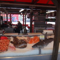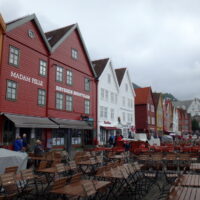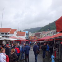 16.6.: 8:00 Es regnet und alles ist grau in grau. Unser Ziel, den 642m hohen Ulriken zu besuchen, scheint sprichwörtlich ins Wasser zu fallen. Gegen 11:00 treffen Britta und Martin ein, sie haben sich trotz des Wetters nach Bergen gewagt und wollen zumindest die Innenstadt besichtigen (jetzt zumindest ohne Regen). Der Fischmarkt immer eine Touristenattraktion und die Bryggen ebenfalls sehr sehenswert.