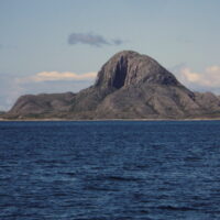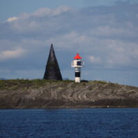 28.6.: Morgens Regen und kein Wind, dann Sonne und kein Wind. Der Risvärsund und der Lekafjord waren spiegelglatt. Das blieb bis zum Mittagessen so, d.h. Hillu war mit Kochen dran. Ab 13:30 wurde es langsam etwas windig, Wind aus WNW mit 4 bis 5kn, hoch am Wind ging das gerade so. Besser wurde es auf dem Melsteinfjord und den Torgfjord. Hier konnten wir meist mit 6kn durch das Wasser gleiten, es gab keine Wellen., also nur leises Plätschern. Schön an den vielen kleinen Inselchen mit Leuchtfeuern und Varden vorbei und die vielen hohen Berge auf der stb-Seite. Auf der Uferstraße die Autos in Spielzeugformat, dahinter viel grün und dann die schroffen Felsen. Gegen 16:00 ist der Torghatten (der“Hutberg“) in Sicht
