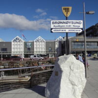und bald Brönnösund erreicht, stb schöne Bebauung und vor uns die geschwungene Brücke. Im Gästehafen von Brönnöysund (65°28,4’N 12°12,4’O) finden wir einen Platz am Schwimmsteg. Heute haben wir in 8¾ h 46sm geschafft, leider weniger als die Hälfte gesegelt.