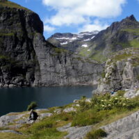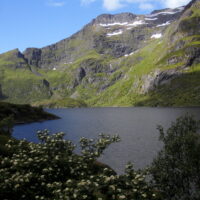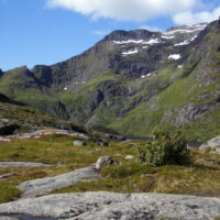 Ab 13:00 Ortsbesichtigung in dem Museumsdorf. Dann zum Aavatnet, ein Binnensee eingerahmt von hohen Felsen. Der Weg wird zur Klettertour, von oben eine tolle Sicht u.a. auch auf Väröy. Die Sonne hat die Wanderung besonders schön gemacht.