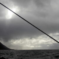 Immer Ausschau haltend nach neugierigen Walen, aber heute war es ihnen wohl zu windig. (Vor 5 Jahren haben wir eine große Herde hier angetroffen.) Wir segeln über den Andfjord und erreichen 16:51 unsere als Ziel geplanten 69° 0,0’N.