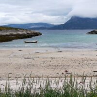 19.7.: Haben heute ein für uns neues Stück Paradies entdeckt, den Ort Tranöy auf der Halbinsel Hammeröy. Haben bei Nieselregen in Lödingen abgelegt und konnten relativ schnell die Segel setzen. Wind aus WSW mit 12kn, also hoch am Wind für einen Kurs um 200°. Ein Holeschlag war nötig, dann lag Tranöy an. Für die 19sm haben wir knapp 4h gebraucht (Ablegen und Anlegen ist immer mit dabei.). Es war schönes Segeln, bei 10°C leider etwas zu kalt. Da wir uns Abwechseln beim Steuern, kann jeder mal unter den Schutz des Spayhods.