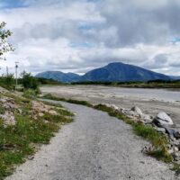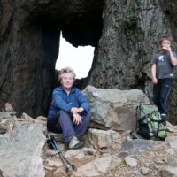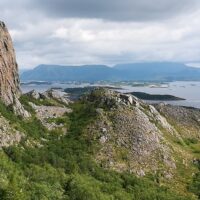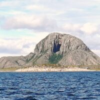 Und wir können unser geplantes Highlight in Angriff nehmen. Zuerst fahren wir 5sm mit Motor (der Wind kommt uns entgegen) und legen in Moihavn, einen kleinen idyllischen Hafen, an. Von dort geht es zum Torghatten, den Hutberg. 4h sind wir wandernd und kletternd unterwegs. Der Granit-Riese (258m hoch) gehört zu den wichtigsten Sehenswürdigkeiten Nordnorwegens und diente früher den Seefahrern als Landmarke. Wir konnten den Berg heute bis kurz vor Leka sehen. Im Reiseführer steht: „Der Torghatten ist ein besonderes geologisches Erlebnis in großartiger Natur.“ – stimmt!! Nach einem ½-stündigem Aufstieg hat man ein großes Loch vor sich, 35m hoch, 20m breit und 160m lang. Einfach toll – und dann der Ausblick nach beiden Seiten. Nach einer Picknick-Pause der Abstieg auf der gegenüberliegenden Seite – etwas steiler, dafür mit vielen Blaubeeren. Und ein schöner Weg unten um den Berg herum.