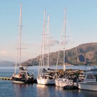 15:00 legen wir ab, zuerst ist Kreuzen angesagt, der Wind kommt aus SW mit 8kn. Gegen 18:00 dreht der Wind auf WSW, eine Stunde später auf WNW. Mit 3 bis 4kn segeln wir in der warmen Abendsonne unserem Ziel, der Insel Leka, entgegen. 20:50 finden wir am Schwimmsteg einen Platz für uns (65°05,3’N 11°44,4’O). Es ist ein ruhiger beschaulicher Hafen mit schönem Blick vom Boot. 150NOK (Strom und Wasser inkl.) kostet die Liegegebühr. 30sm sind es heute geworden.