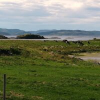 31.7.: Es sollte das nächste Highlight werden, hat aber nicht geklappt. In der Touristeninfo war niemand und zum Fahrradausleihen das gleiche. So sind wir in den Ort Leka gelaufen, vorher habe ich jemand nach dem kürzesten Weg gefragt. Den haben wir nicht gefunden, also nach 1km wieder zurück und dann noch 2km bis Leka. Danach haben wir irgendwie genug, insbesondere da für heute Abend Starkwind angesagt ist und wir nicht so spät im nächsten Hafen sein wollen. So bleibt nur der Blick auf das Plakat und der Versuch, die Berge von Ferne zu fotografieren. Im Reiseführer steht, dass man im Westteil der Insel glaubt, auf einem anderen Planeten zu sein – das ist uns heute nicht gelungen.