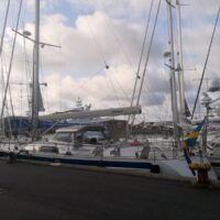 26.8.: Heute sind wir wegen des angekündigten Windes (West mit 10 bis 15kn) nach Göteborg gesegelt. Nach Einkaufen und Tanken haben wir 11:30 abgelegt. Mit achterlichem Wind ging es nach Osten, dass klappte 22sm so. Und dann muss wohl jemand am Windschalter gedreht haben, es gab nur noch maximal 8kn meist weniger. Nach ½h mit 3 bis 3,5kn Geschwindigkeit, musste der Motor wieder an. Wir wollten noch im Hellen Göteborg erreichen, d.h. es sind 18sm mit Motor geworden. Nun, auch so war es nicht gedacht. Vor Göteborg ging es durch die Schären und entlang der Schifffahrtslinie. Da mussten wir schon sehr auf die Fähren und großen Frachter achten. Zum Übernachten haben wir uns für den GKSS – Verein (57°40,1’N 11°18,4’O) entschieden, eine große Anlage mit vielen Jugendbooten. Liegegebühr hier 300SEK (Strom und Wasser incl., WLAN nicht).