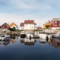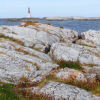 Der Leuchtturm, 1888 erbaut, (bei gutem Wetter von Kristianssund zu sehen) soll mit 44m der 2.-höchste in Norwegen sein. Die lange Mole schützt die kleine Insel und an jeder Stelle im Dorf bieten sich bei unserem Inselrundgang neue Fotomotive. Und erstaunlich, wie die Häuser auf den glatt geschliffenen Felsen erbaut wurden. Für uns ein weiteres touristisches Highlight. Und ein bisschen Abendrot gab es auch.
