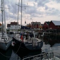 5.8.: Sonne, wenig Wind. Hillu nutzt den Vormittag für den Gang zum Einkaufszentrum (Dateien auf Server übertragen und Einkaufen), Jörg repariert etwas am Großsegel. 11:15 wir abgelegt und mit Motor aus dem Hafenbereich von Kristiansund gefahren. Anschließend muss der Motor an bleiben, für Wind aus N mit 3 bis 5kn und einen Kurs um 340° ist das kaum anders möglich. Unser Ziel, die Inselgruppe Grip mit der Hauptinsel gleichen Namens, ist nur 8,5sm entfernt. Vor der Einfahrt ein kurzer Angelstopp – Jörg holt 9 Köhler in kurzer Zeit aus dem Wasser.