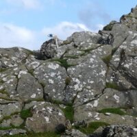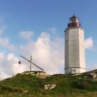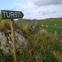 Wir haben Glück, gegen 18:00 wird es heller und wir können wandern. Wir nehmen uns den Touristenweg vor, leider etwas feucht, aber landschaftlich sehr schön. Zuerst zum Leuchtturm, daneben das alte Feuer. Weiter über Wiesen mit vielen Schafen in Richtung Küste. Und dort wird es wild, manchmal schwierig den gekennzeichneten Weg zu finden, Felsen und Übergänge über Zäune, dazwischen immer wieder kleine und größere Wasserflächen und Schafe – pure Natur. Mit etwas nassen Füßen kommen wir nach 1½h auf der Straße und bald auch am Boot an.
