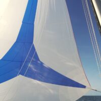 3.9.: Heute soll es über die Ostsee gehen, der Wind ist zwar nicht toll, aber die Richtung stimmt einigermaßen laut Vorhersage. Wir legen 7:30 ab und können mit Halbwindkurs mit 3,5kn vorankommen, für 40sm nicht viel. Also wird der Gennaker heute benutzt.