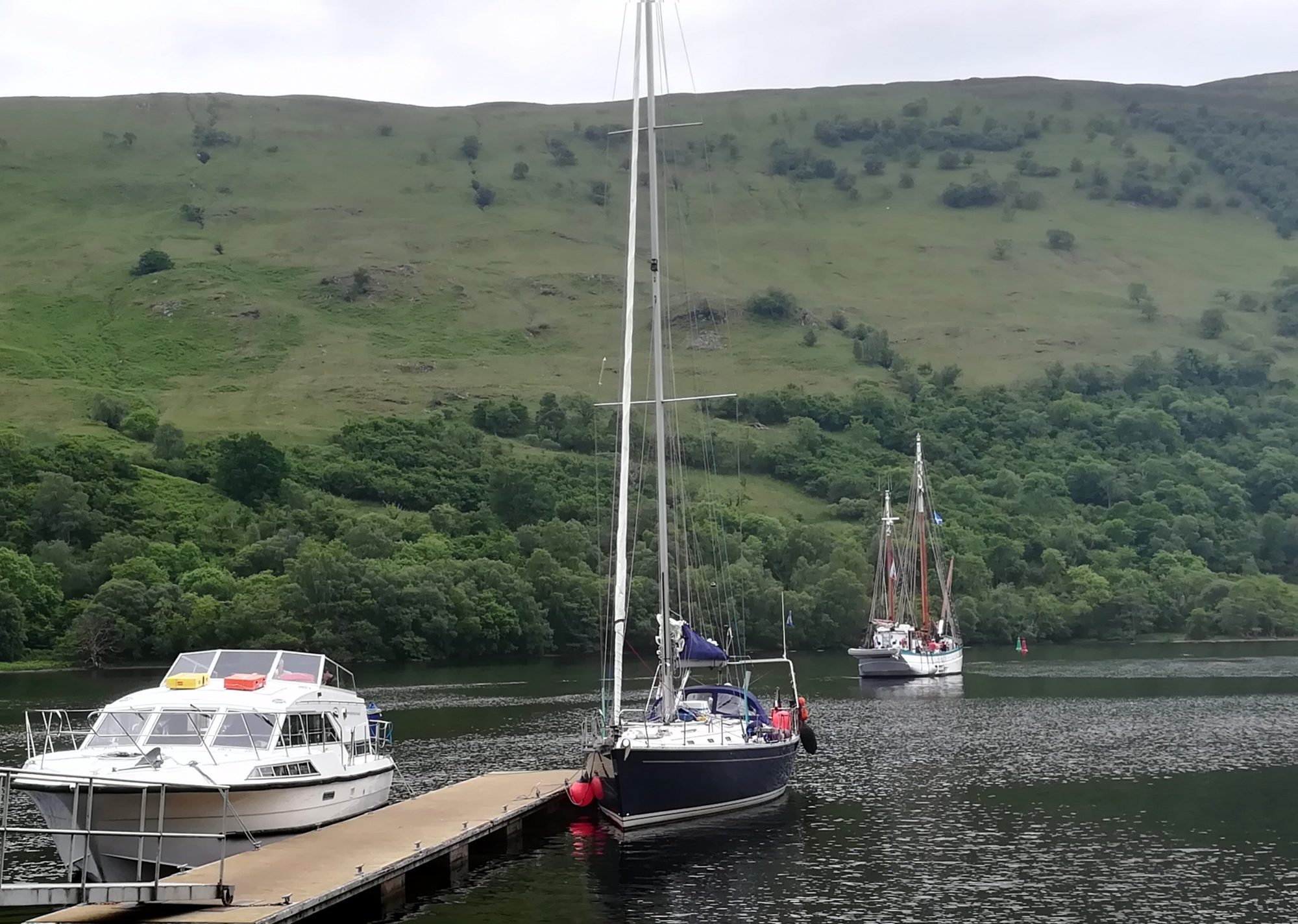 11.6. Montag, 28. Tag: Wetter ähnlich dem Gestrigen. Wir warten auf das Schleusen – 9:56 ist es, bevor es losgeht. Wieder waren wir in 4 Schleusenkammern. Weiter durch den Caledonien-Kanal, schöne Landschaft auf beiden Seiten. 12:44: vor der Loch Oich Brücke und Schleuse, dann ist der See erreicht. Er ist der kleinste von den drei Seen, die durch den Kanal verbunden sind. Loch Oich ist im Great Glen. Er ist 6km lang, 460m breit und 47m tief. Er liegt am höchsten, 32m über dem Meeresspiegel. Zuerst legen wir vor der Ruine des Invergarry Castle’s an. Mittagspause und Ruine anschauen, dann weiter bis zum Ende des Sees. 14:58 ist der heutige Trip mit 7sm beendet. Wir liegen vor der nächsten Kanalbrücke im Great Glen Water Park (57°02,8’N 04°47/,9’W) in wunderschöner Landschaft.