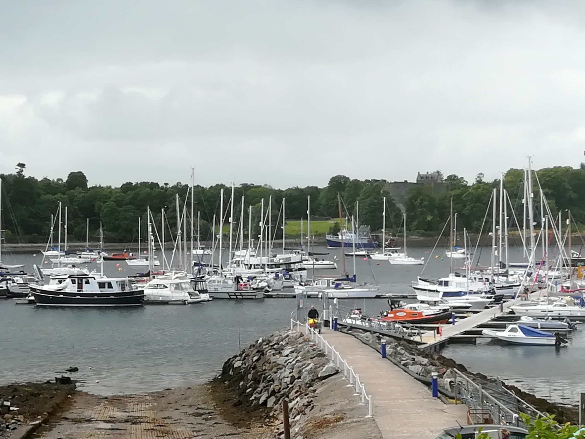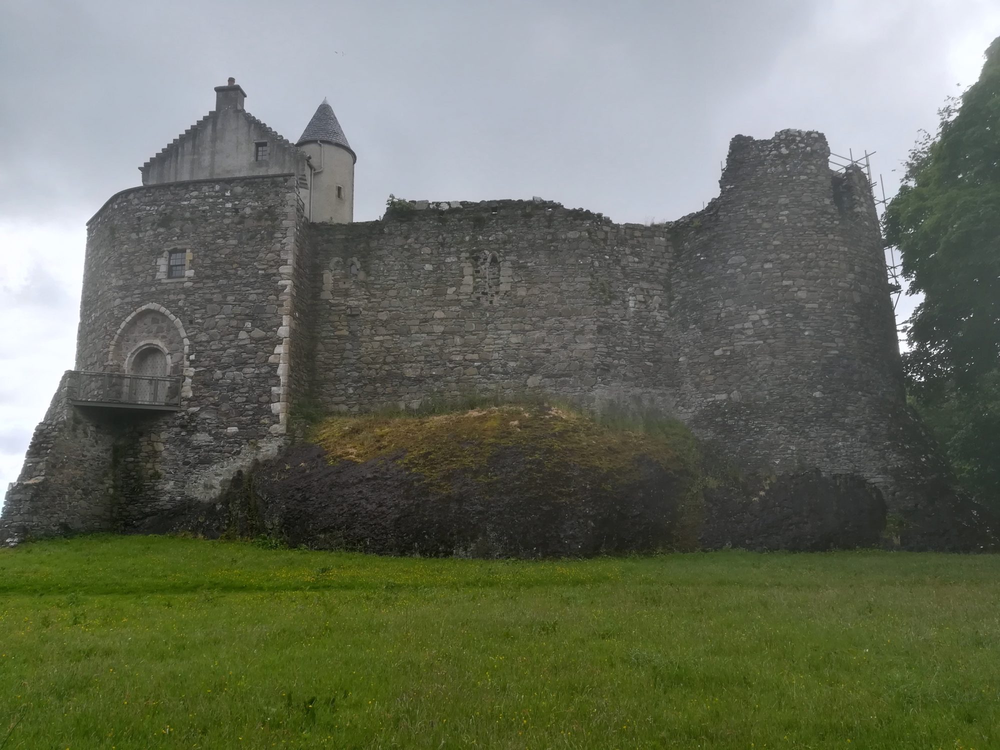 16.6., Sonnabend, 33.Tag: Das Wetter soll besser werden, was es allerdings bis 13:00 nicht tut. Wir lassen uns schleusen und sind 9:05 auf dem Loch Linnhe. Es ist kein Wind und es regnet. So muss heute für 5h der Motor anbleiben. Die letzten Meilen kommt zwar Wind, aber da lohnt der Aufwand nicht mehr. 10:32 ist der Corran Pt querab, 12:20 Port Appin. Im schmalen Bereich zwischen Festland und Lismore Island tüchtige Strömung, zum Glück für uns Schiebestrom. Was an Landschaft durch den Regen sichtbar ist, ist schön. Wegen des Wetters legen wir schon in Dunstaffnage (56°27,0’N 05°26,0’W) an und nicht in Oban. Mit Strom haben wir hier 34,19£ zu zahlen. Ab 15:00 hört der Regen endlich auf und die Sonne scheint. 16:30 beginnen wir unsere 2-stündige Wanderung. Ziel ist das Dunstaffnage Castle – normalerweise geöffnet, heute für uns aber nicht. Dann eben nur von außen und die Ruine der Kapelle dazu.