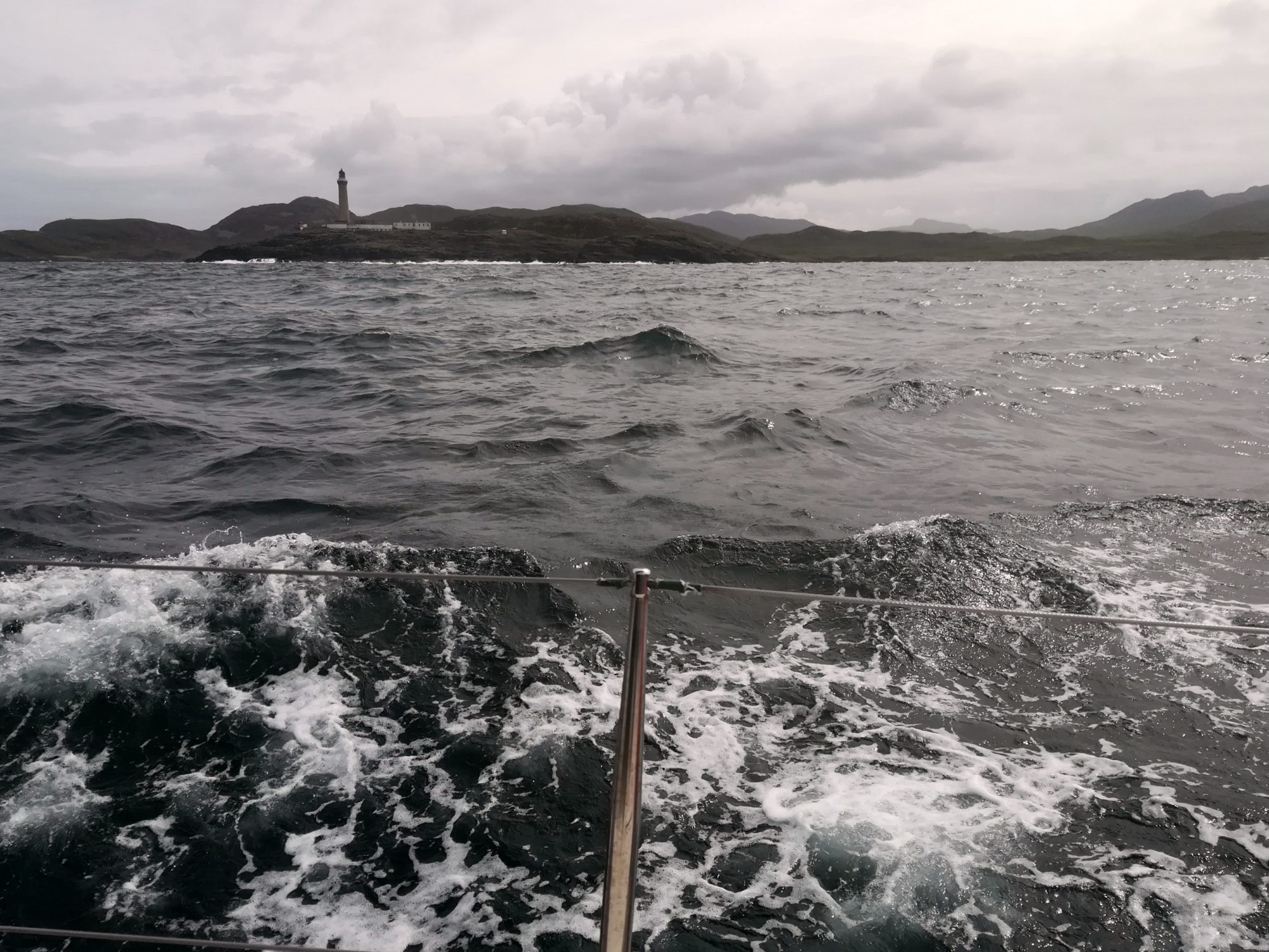 19.6., Dienstag, 36. Tag: Zusammengefasst, heute hatten wir einen schönen Segeltag, Wind hat mitgespielt und Regen gab es auch nicht. An die niedrigen Temperaturen haben wir uns gewöhnt. Aus dem Sound of Mull war Kreuzen bei Wind aus NordWest angesagt. Nach dem Ardnamurchan Leuchthaus ging es mit raumen Wind weiter, über den Sound of Arisaig mit achterlichem.