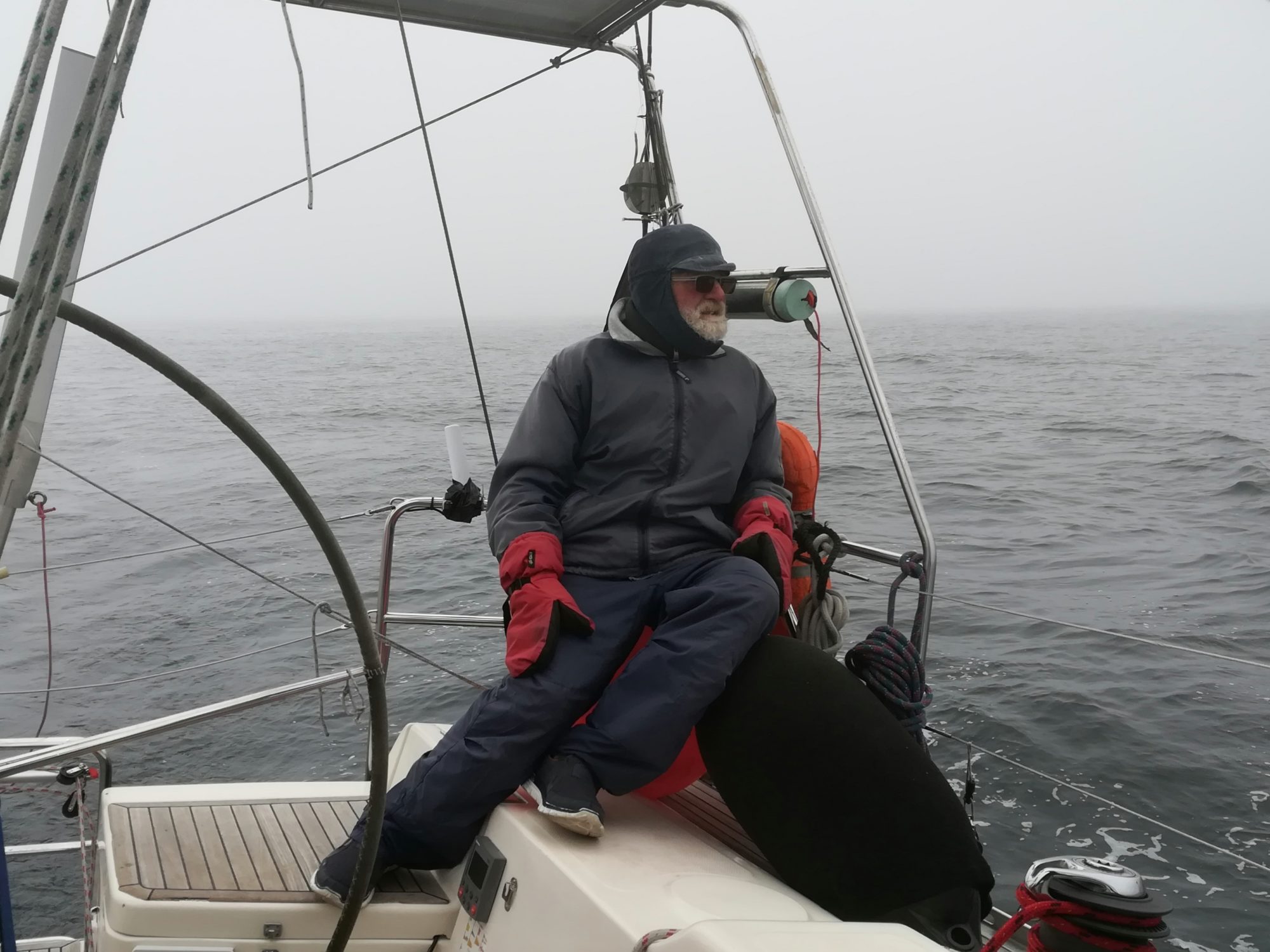 3.6., Sonntag, 20. Tag: Heute war wahrlich nicht unser bester Tag, es war einfach ungemütlich. Wie gestern dichter Nebel – keine Sicht. Lufttemperatur 10°C, die Luftfeuchtigkeit wird mit 99% angegeben, schwacher Wind aus NO. Bis nachmittags ändert sich nichts.