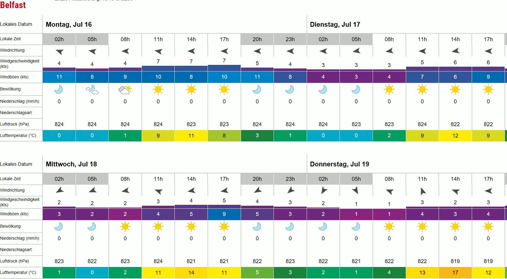 17.7., Dienstag, 64. Tag: Das sind Wind und Temperaturen von heute und den nächsten Tagen.
