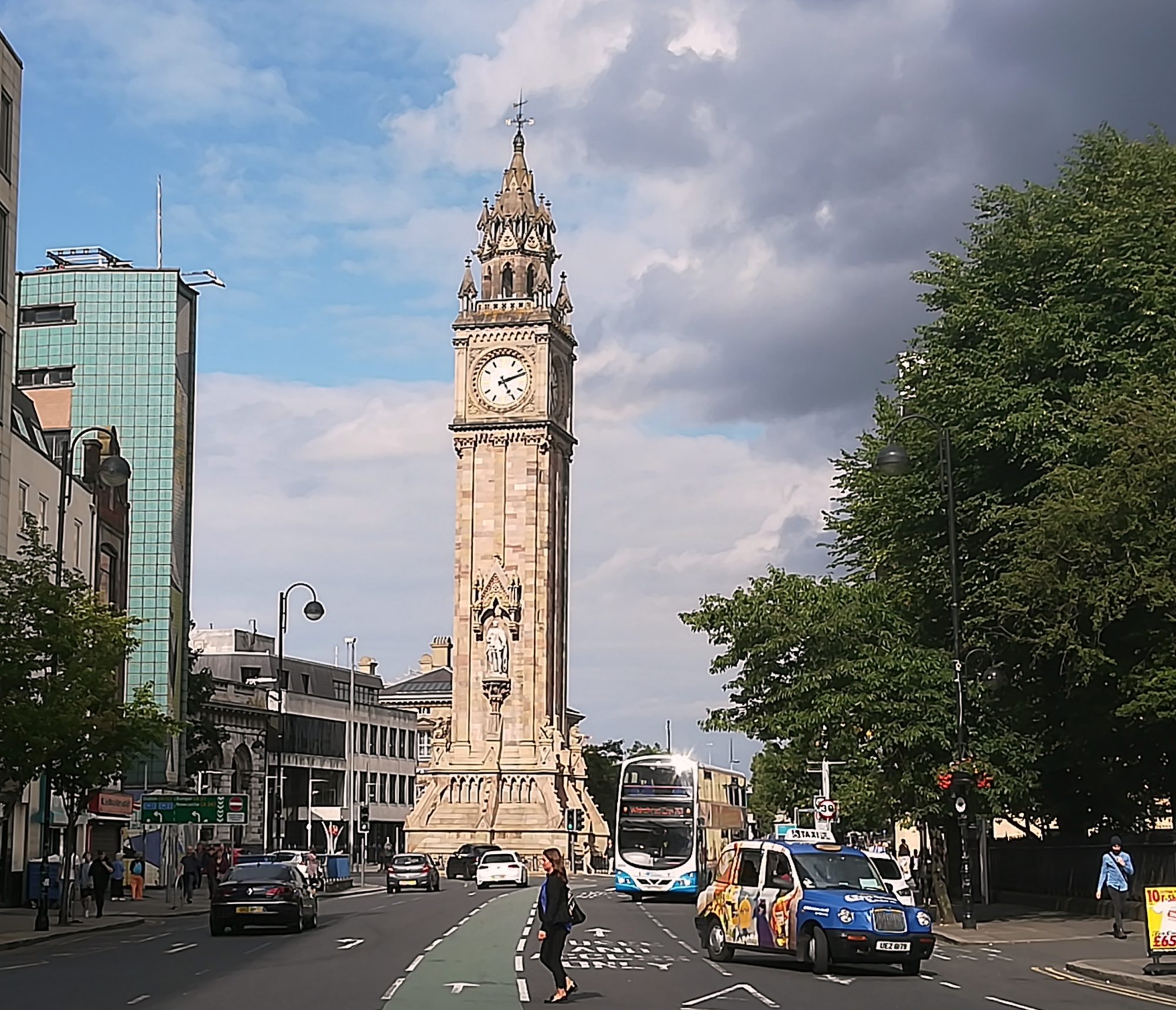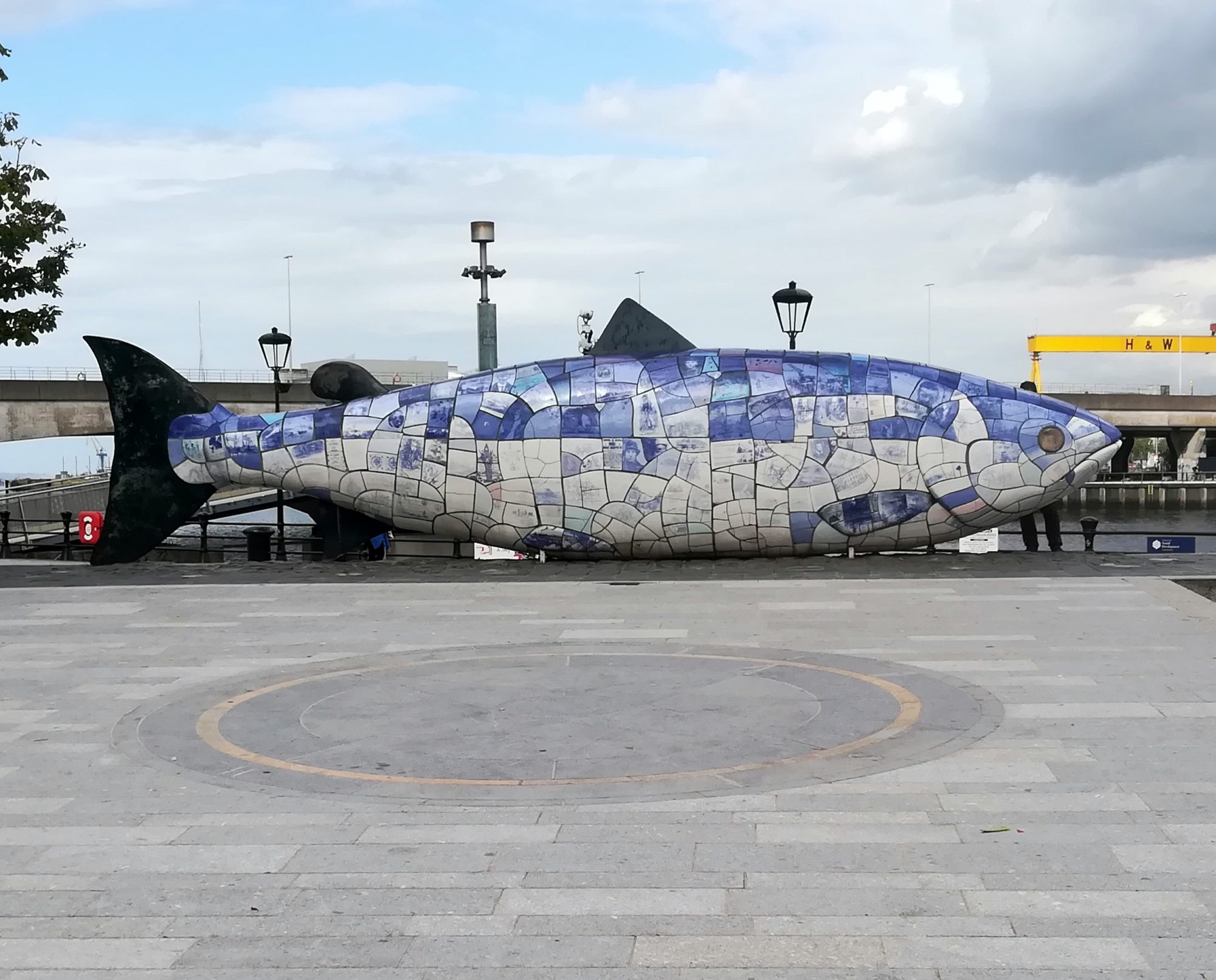 Nach Mittagessen und Pause auf zur Stadtbesichtigung, vorbei an der Odyssey Arena (ähnlich der Mercedes Benz Arena) und dem W5 (ein interaktives Discovery Centre) laufen wir auf einer neuen Fußgängerbrücke über den River Lagan. Der Big Fish, das Custom House, der Albert Memorial Clock Tower sind schon bald im Blick.