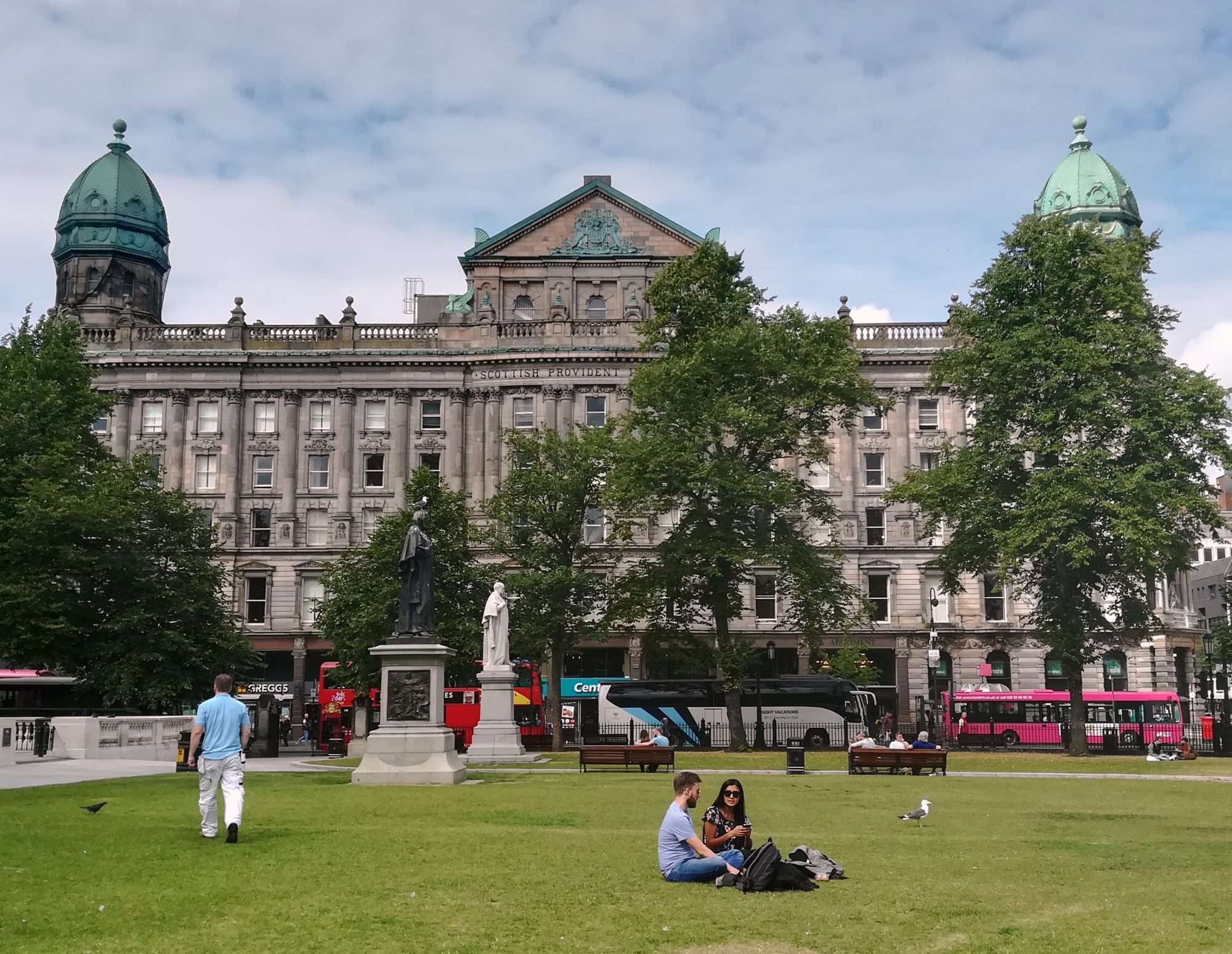 nochmals zur City Hall (heute nur außen, u.a. die Statue von Sir Edward Harland und das Denkmal für die Opfer des Titanic-Untergangs), daneben das imposante Schottische Provident Institut.