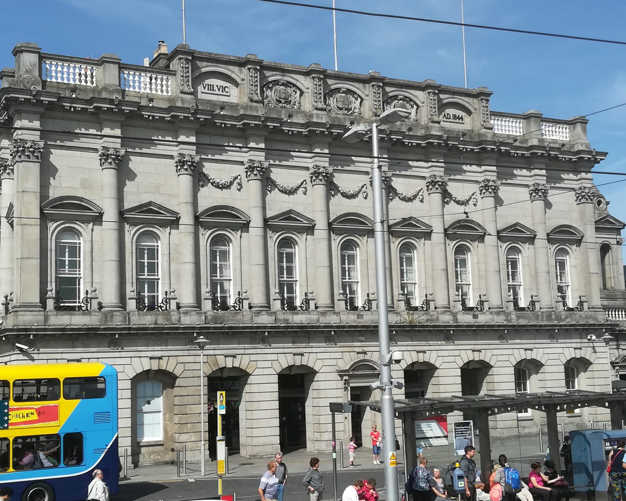 das Custom House (ehemaliges Hauptzollamt, 130m lange Fassade), das General Post Office (wirkt wie ein griechischer Tempel).