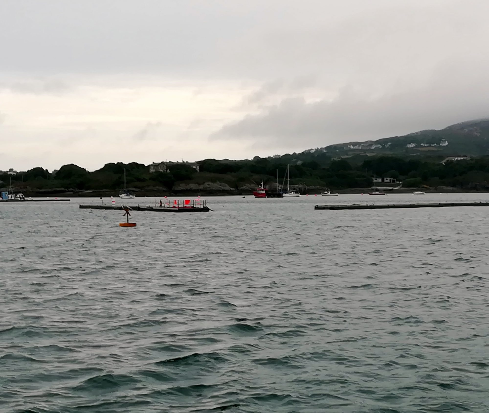 Nach einer ¾ h beginnt der Gegenstrom, unsere Geschwindigkeit über Grund ist nur noch 2,9kn. Leider nimmt der Wind auf 9kn ab, das war nicht so in der Vorhersage. Bis 11:00 versuchen wir es noch mit Segeln, wir werden aber durch den Gegenstrom seitlich so versetzt, dass wir nur wenig vorwärts kommen. So bleibt nur motoren, um pünktlich in der Marina zu sein. Ab 15:00 kippt der Strom, es sind aber nur noch 5kn Wind, also bleibt der Motor an. 16:30 haben wir 10kn Wind aus Ost, endlich kann der Motor aus, 2h segeln – meist mit Schiebestrom. 18:50 ist die Hafeneinfahrt erreicht, sie ist sehr abenteuerlich. Die Tonnen sind erst kurz vorher zu sehen, stb gucken Steine aus dem Wasser, alles schmal und bei Dünung kaum befahrbar. Plätze sind genug vorhanden, wir legen längs an einen Schwimmsteg an. (52°53,1’N 04°24,4’W)