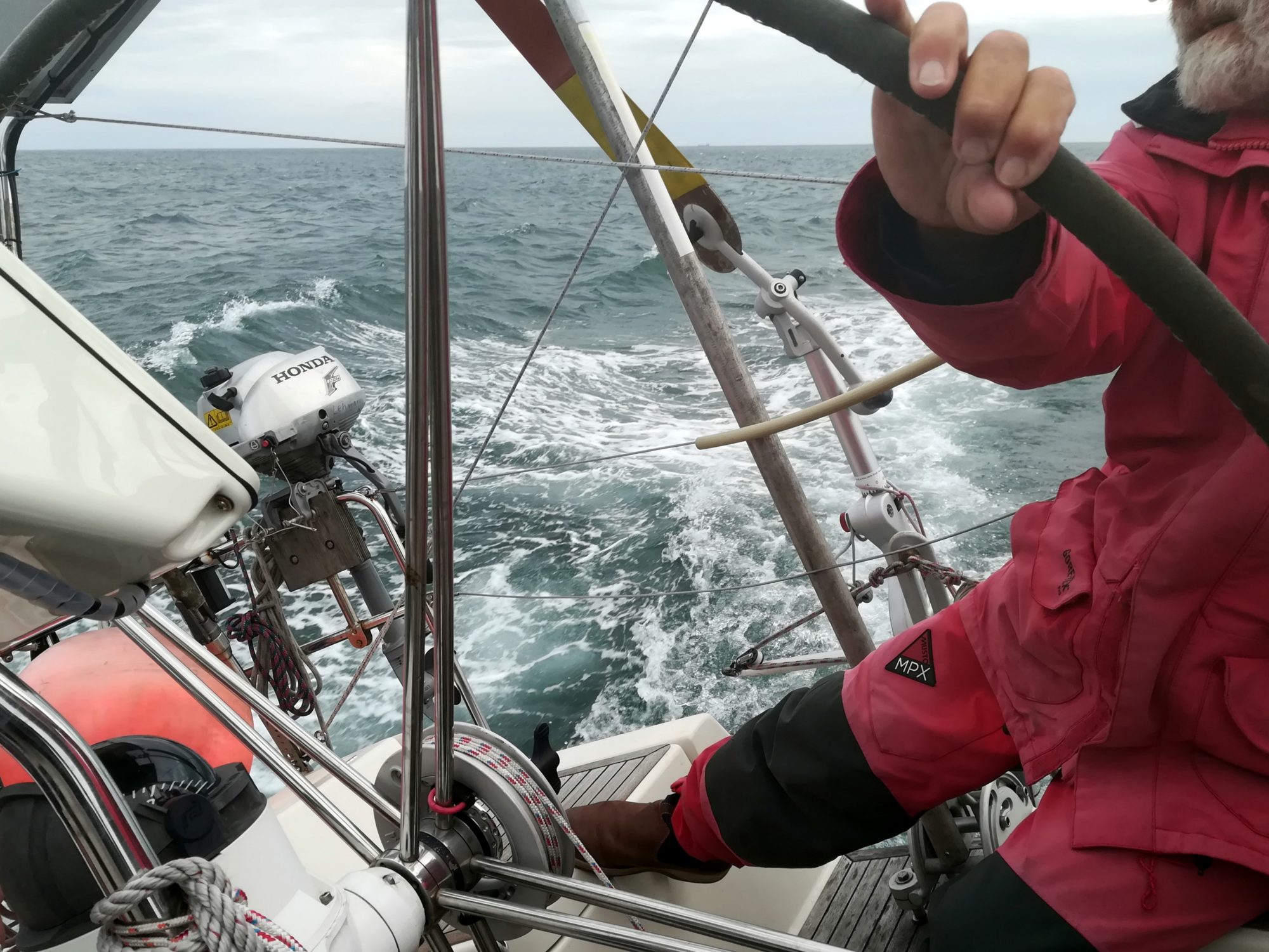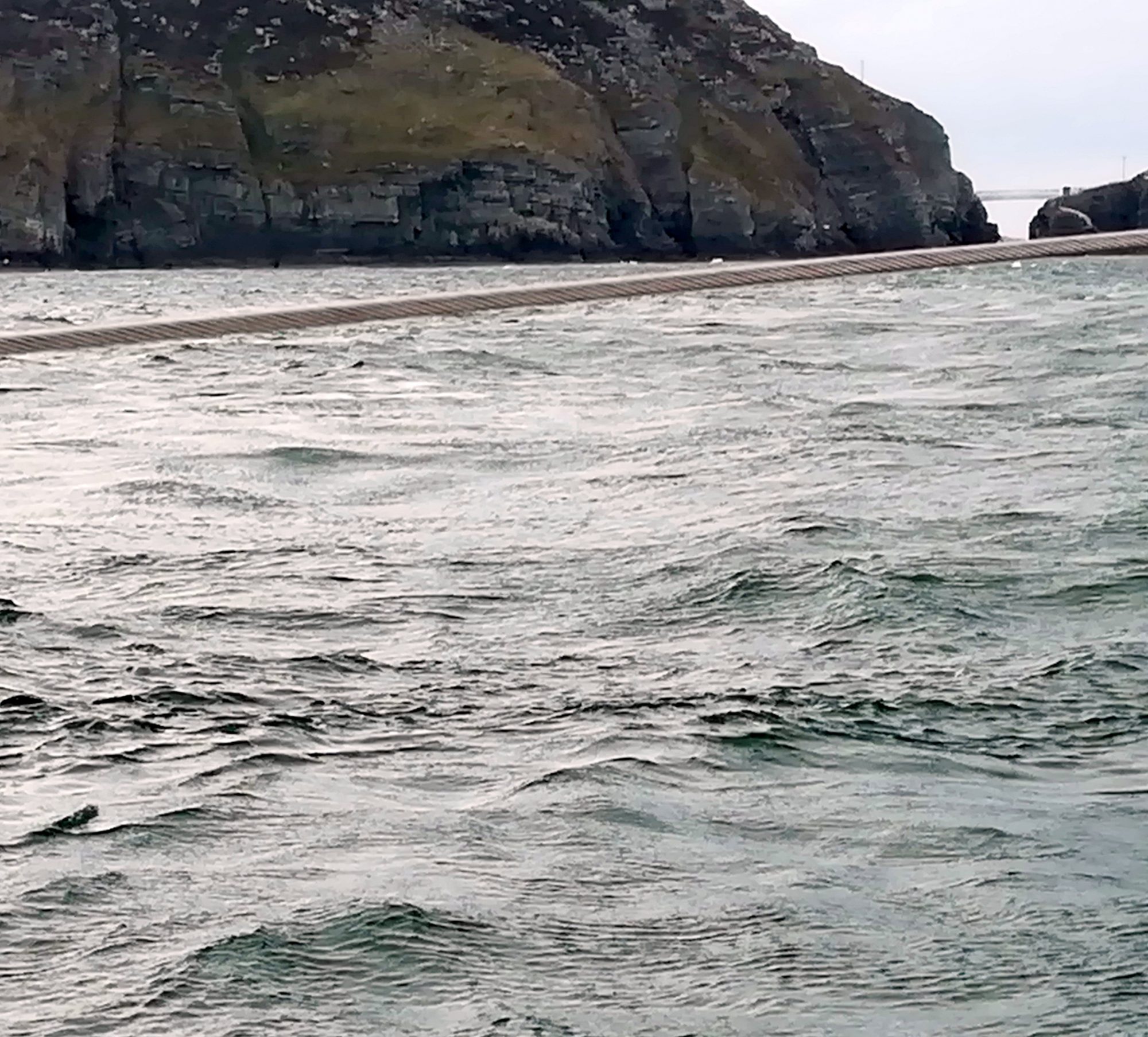 27.7. Freitag, 74. Tag: Eigentlich wollten wir einen Tag in Holyhead bleiben, die Windvorhersage für Sa und So brachte uns aber zur Entscheidung, heute trotz angesagtem Südwind weiter zu segeln. Wir wollen bei Starkwind lieber in einer Marina sein. 7:42 wird schon abgelegt, wir wollen bei Hochwasser in Pwllheli ankommen. Wir nehmen dabei auch in Kauf, dass wir vor Holyhead 3kn Gegenstrom haben können. Gleich im Hafen setzen wir die Segel und pfeiffen bei 18kn Wind aus SSO ab. Fock und Groß 1x gerefft.
