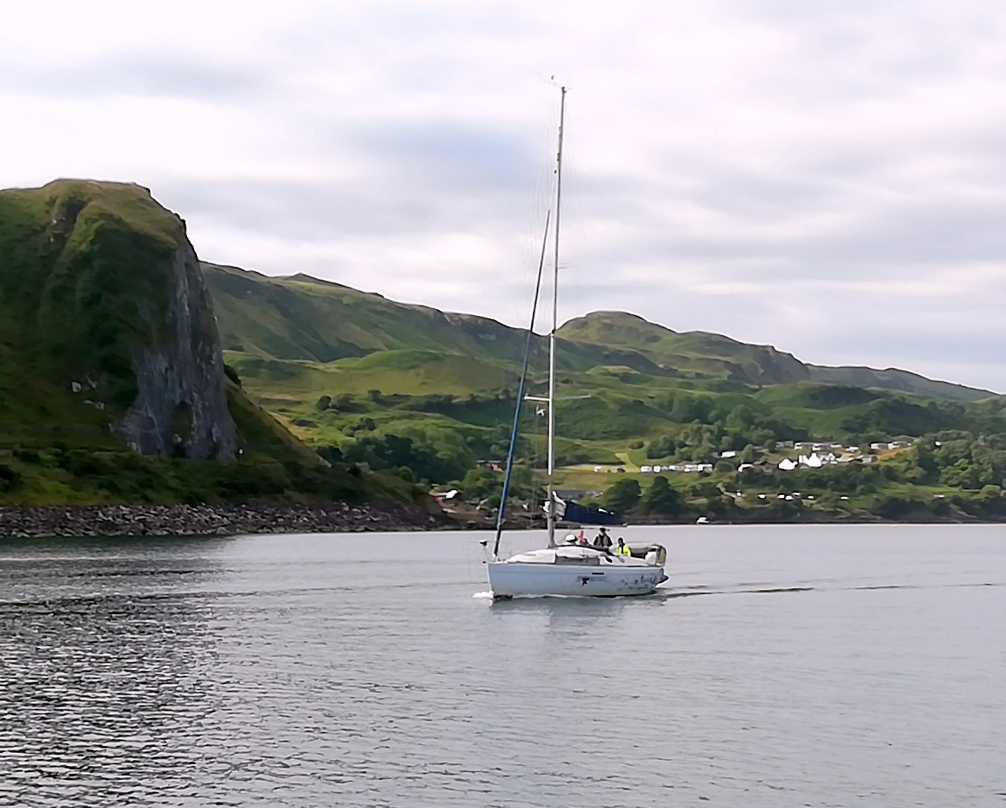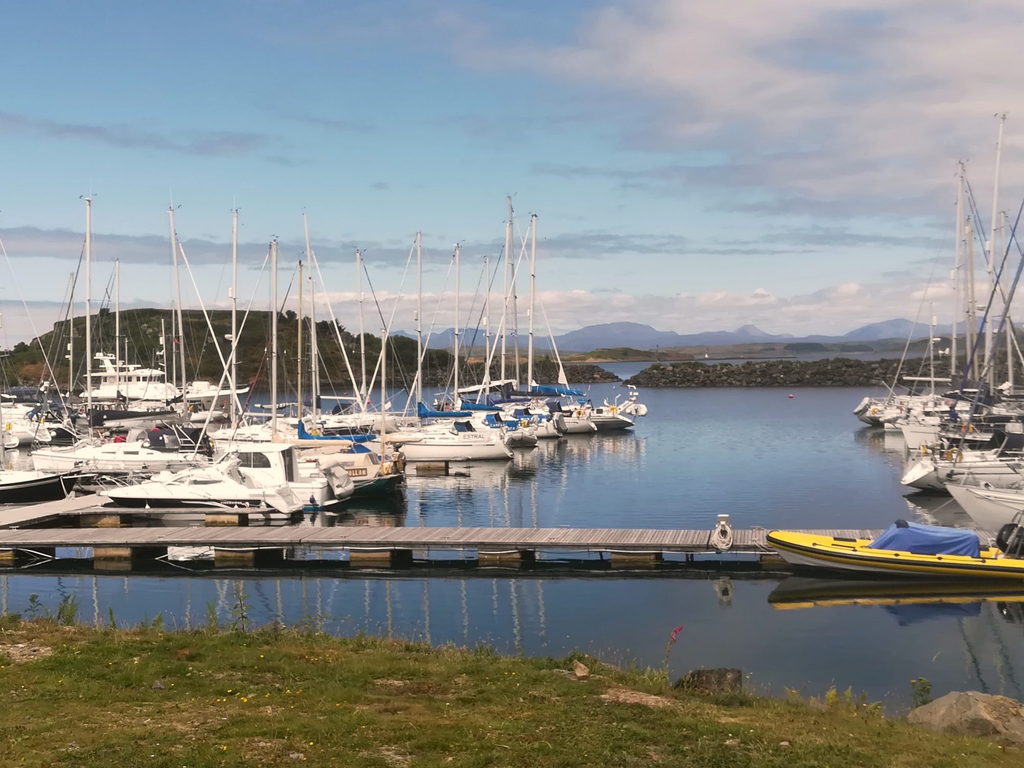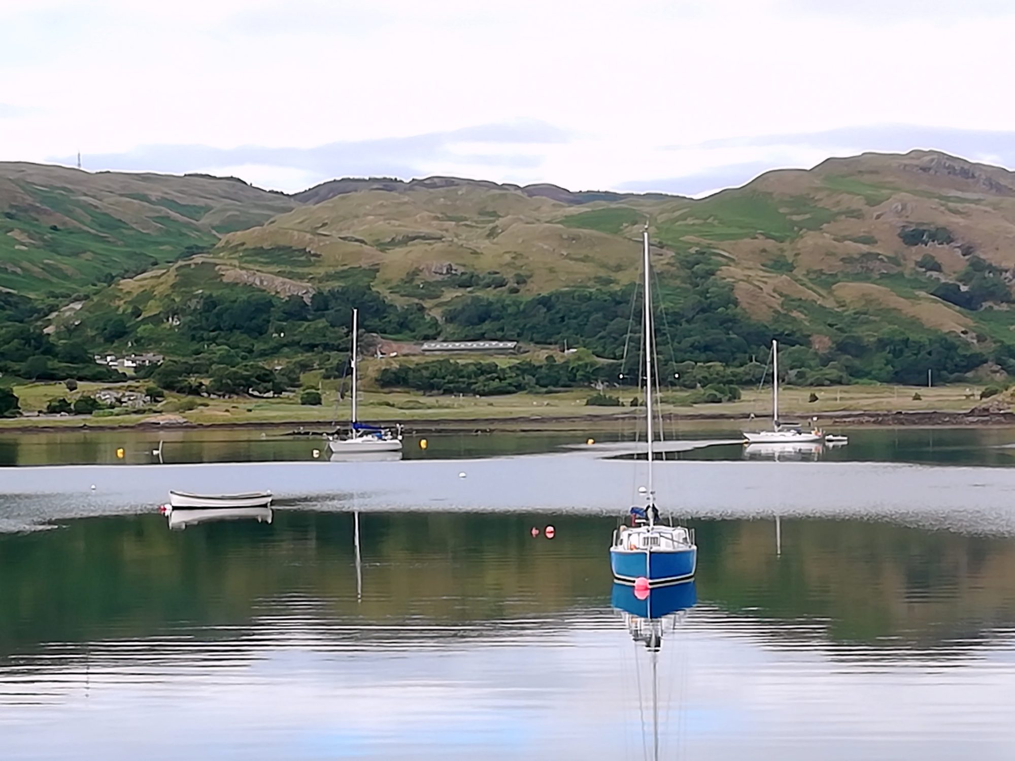 7.7., Sonnabend, 54. Tag: Heute mal wieder fast kein Wind, das Hoch liegt weiter über uns. So bleibt nur der Motor, um vorwärts zu kommen – wir hatten auch nur eine kürzere Strecke im Plan. Landschaftlich wieder toll, zuerst zwischen Kerrera und dem Festland, weiter auf dem Firth of Lorn und schmale Abschnitte zwischen mehreren Inseln.