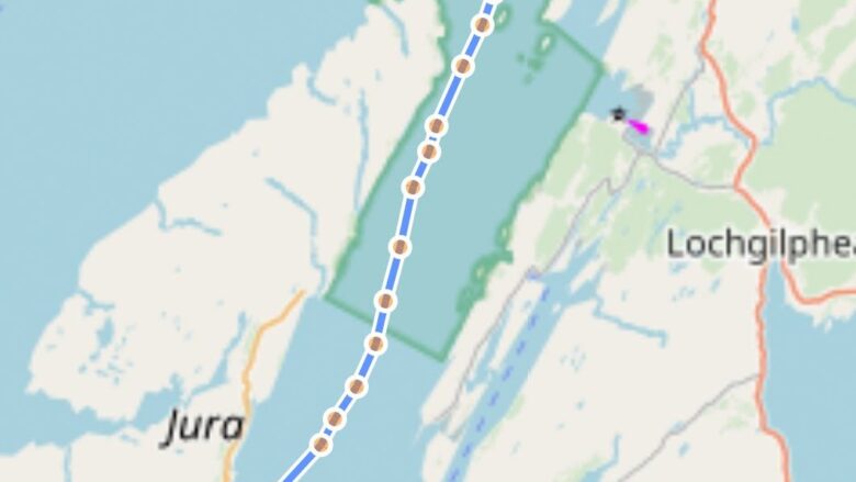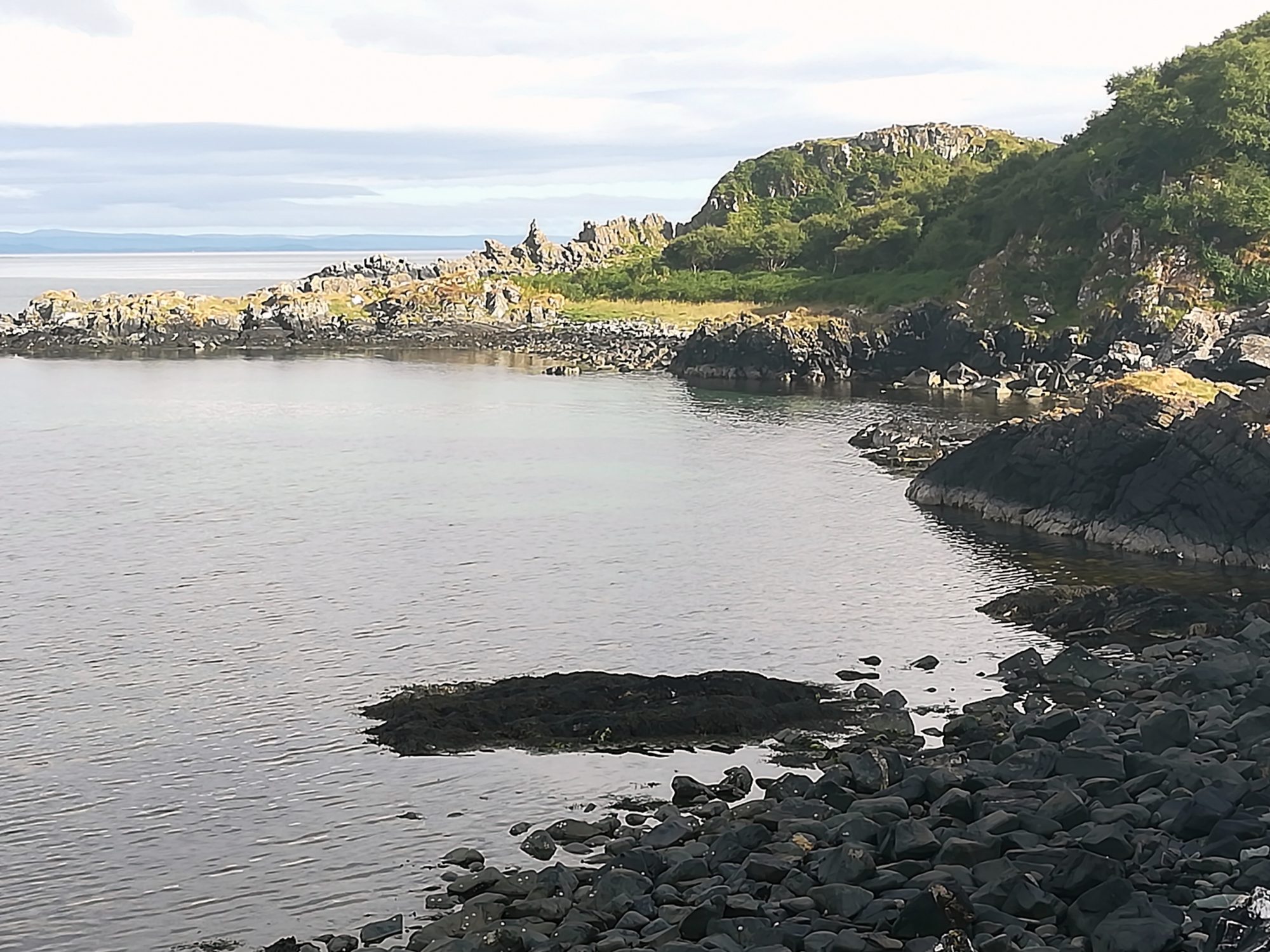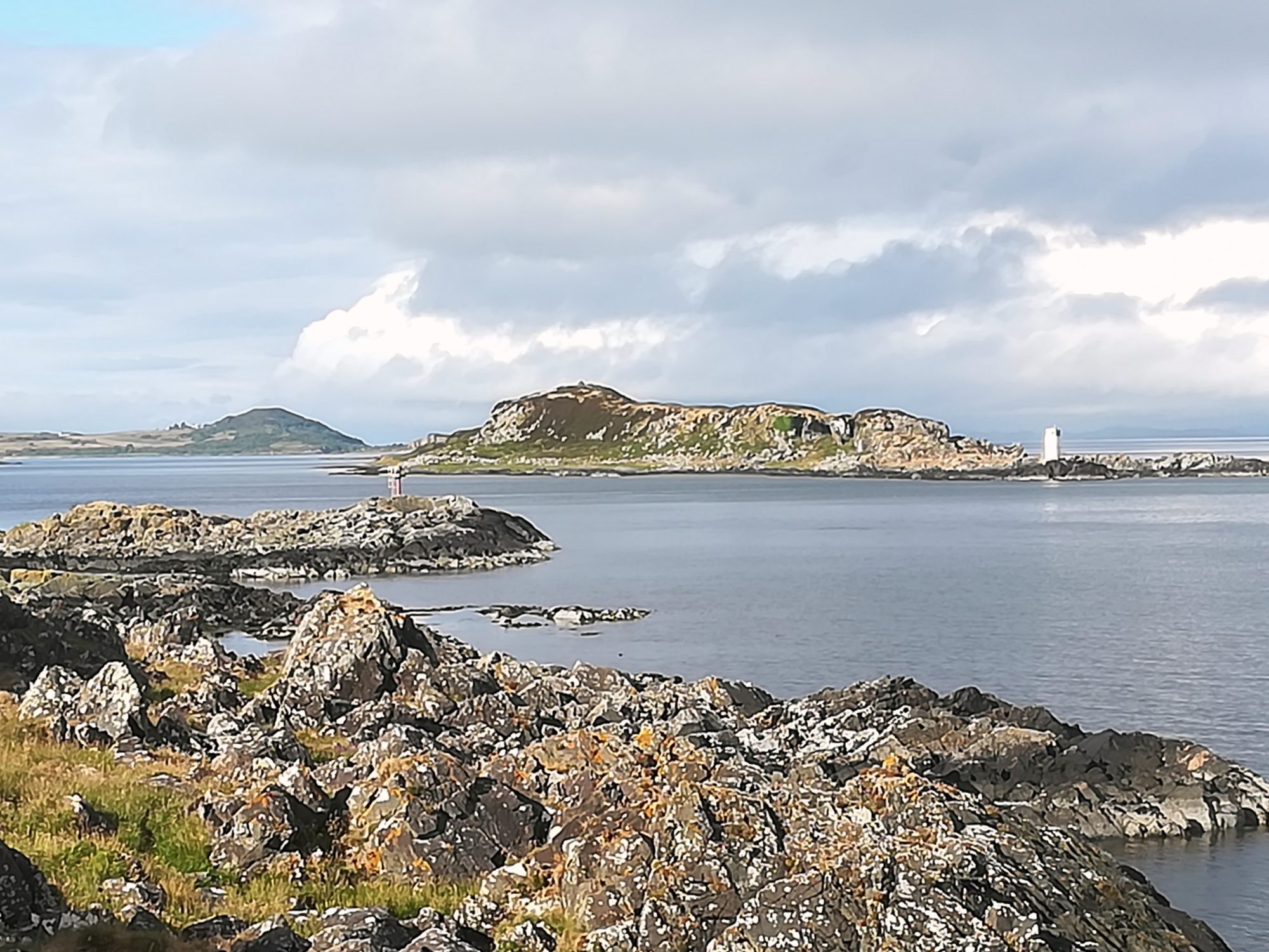 8.7., Sonntag, 55. Tag: Wir sind doch in Schottland – gestern Abend gab es Nieselregen und heute morgen auch. Dazu alles wolkenverhangen. Gegen 10:00 hört der Regen auf, wir starten unsere Tour. Es bleibt bis nachmittags bedeckt, aber mit Wind bis 15kn. Meist kommt er aus SW, Kreuzen ist angesagt mit kleine Holeschlägen. Bald ist die Nordspitze von Jura erreicht, wir sind im Sound of Jura. Da der Wind in Landnähe von Jura stabiler ist, segeln wir dort. Die Insel ist ziemlich eintönig. Erst kurz vor unserem Ziel wird es interessant, die fast 800m hohen Gipfel der Paps of Jura kommen in Sicht. Sie sehen eigentümlich aus, sollen aus Quarzit bestehen. In der Bucht von Craighouse (55°50,1’N 05°56,8’W) angeln wir uns eine Mooringtonne, Anlegemöglichkeiten gibt es nur für Schlauchboote. Eine schön gelegene geschützte Bucht, die Jura-Destillerie von weitem zu sehen.
