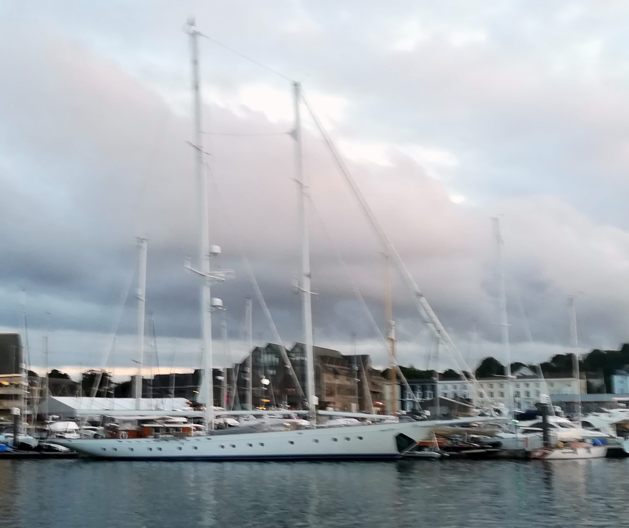 Mittag treffen wir uns an Bord. Versuche, nach dem Essen etwas zu unternehmen, enden damit, dass unsere Kleidung nach kurzer Zeit durchnässt ist. Also ist heute Bordgammeltag angesagt. Der Wind hat tüchtig zugelegt und bringt unser Boot trotz des geschützten Hafens zum Hin-und Herschwanken. Liegegebühr 83£ (man gönnt sich ja sonst nichts) für 2 Nächte. Dafür haben wir aber tolle schicke große Yachten in unserer Nähe.