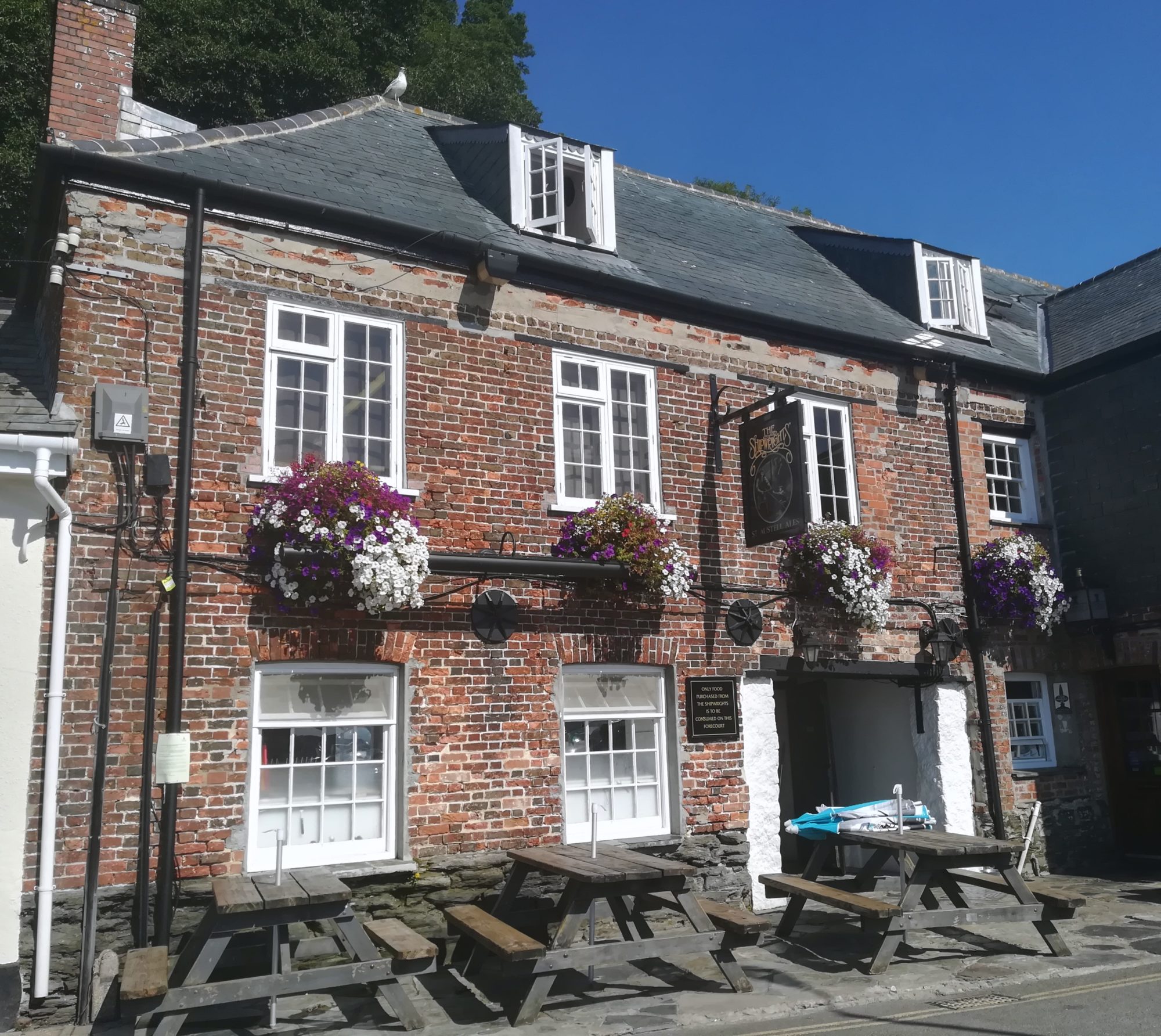 5.8., Sonntag, 83. Tag: Heute ist richtiges Sommerwetter, in der Sonne fast zu warm. Vormittags nehmen wir uns die vielen engen, schönen Gassen der Stadt, die Kirche St. Petroc und den Prideaux Place, ein bereits 1592 errichteter Landsitz, vor.