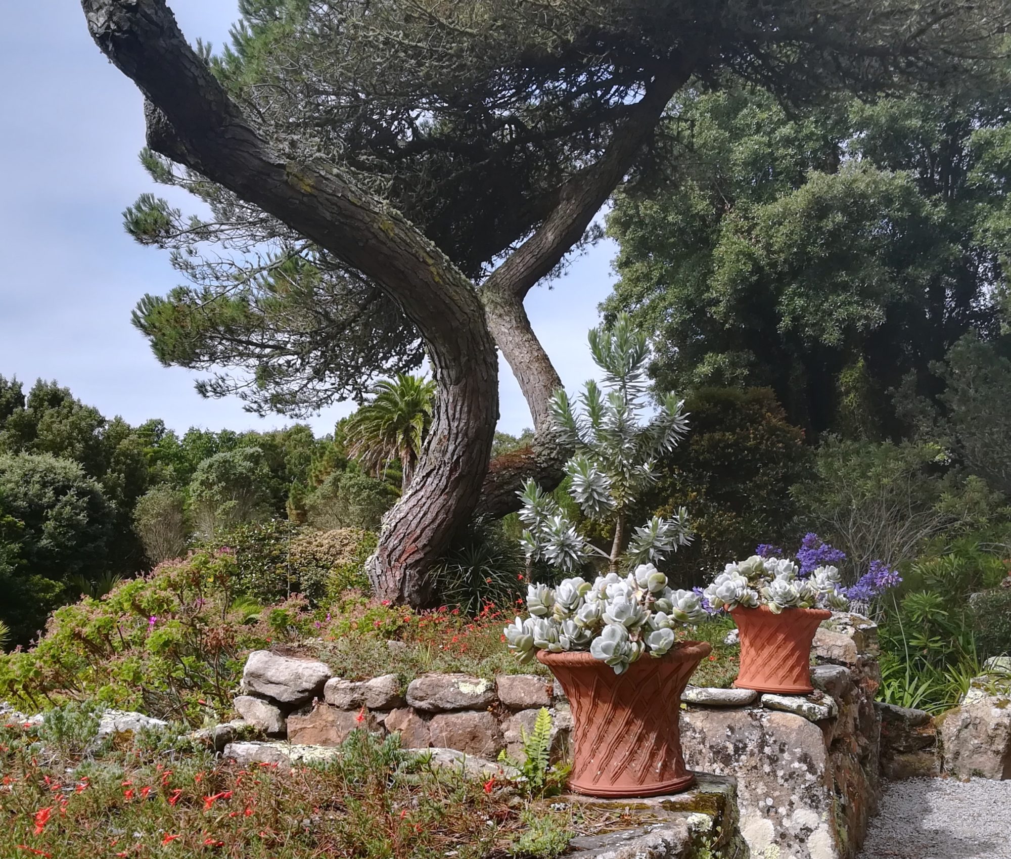 7.8., Dienstag, 85.Tag: Die Nacht war etwas unruhig, durch den NW-Wind mit~15kn gab es Schwell und einiges Zerren an der Kette der Mooringtonne. Nichtsdestotrotz, wir sind guter Stimmung, weil die Sonne scheint und haben uns den ab 1834 von A. Smith erschaffenen Garten angeschaut. Der Abteigarten von Tresco – „ein irdisches Paradies“-, mehr als 4000 Pflanzensorten soll er haben und die gedeihen dank des milden Klimas der Scilly Inseln prächtig. Das Muschelhaus, das Valhalla-Galionsfigurmuseum und weitere attraktive Skulpturen sind in dem Park verteilt, die Abtei ist privat – also nur von außen zu besichtigen.