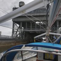 12:15 Uhr sind wir in der Marina Goclaw, zu 15:00 Uhr ist der Bootsmann mit einem Helfer bestellt, in 20 min steht der Mast. Nun alles Aufriggen – jetzt ohne Regen – , der Rest (Großbaum anbauen, Segel anschlagen,…) wird morgen Vormittag erledigt.
