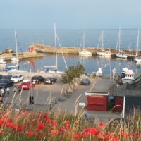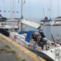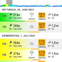 Am Mittwoch sollte es 12 kn aus Nord geben, also eigentlich günstig für die Rundung des Südostens von Schweden. Aber manchmal stimmen die Windvorhersagen nicht, der Wind kam mit 20 bis 24kn aus NO. Nur mit der Fock waren wir schon 5,6kn unterwegs. Kreuzen gegen Wind und Welle wurde immer schwieriger, sodass der Motor ab 11:30Uhr mithelfen musste und das Ziel nicht Simrishamn oder noch weiter nördlich wurde, sondern Skillinge. Ein kleiner gut windgeschützter Hafen, denn für nachts sind bis zu 34kn Wind angesagt.