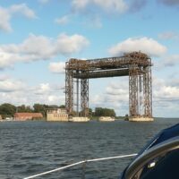 Montag heißt es früh Ablegen, der Wind soll nachmittags zunehmen. Er kommt, wie vorhergesagt, aus NO. 9:00 Uhr messen wir schon 22kn. Nur mit der Fock segelnd, sind wir in rund 2h über den Bodden, auch in der Peene bläst es weiter so stark, nur die Wellen sind kleiner. Wir sind wieder zu schnell, rollen die Fock ein und lassen uns treiben, trotzdem müssen wir noch 1h auf die Öffnung der Wolgaster Brücke warten. Weiter im Race mit den Yachten, die mit uns die Brücke passiert haben – wir sind Sieger!! Der Wind ist weiter bis sehr stark (bis 24kn aus NO), wir nutzen nur die Fock. Auch hier schaffen wir es ohne Motor in der Fahrrinne zu segeln. Krumminer Wiek und Achterwasser bleiben backbord, in der Moderort-Rinne waren wir noch nie so schnell unterwegs. Auch hier lassen wir uns bis zur Zecheriner Brücke treiben, sind dabei noch über 3kn schnell. Also vor der Brücke noch eine halbe Stunde ankern. Da der Wind immer noch nicht weniger ist, ist Karnin als Hafen nicht geschützt, heißt für uns weiter. In 1 ½ h sind wir übers Haff, Rollen die Fock ein und fahren bis zum Stadthafen von Ueckermünde. Die Einfahrt in die Uecker war nicht ganz ohne, starke Wellen hatten sich durch den NO-Wind gebildet. Heute sind wir in 8 ¾ h 50sm gesegelt.