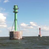 Auch am Dienstag bleibt die Windrichtung, ist anfangs etwas weniger mit 10 bis 14kn. 1h mit Motor genau gegenan, dann können wir Abfallen. Heute mit gerefftem Groß und Fock hoch am Wind. Nach 2h ist die polnische Grenze erreicht, der Wind wird allmählich immer stärker, mit Halbwindkurs „fliegen“ wir übers Stettiner Haff. Mittags ist Ziegenort querab, sonst oft unser Ziel. Heute können wir bis kurz vor die Marina Goclaw segeln, 6 ¼ h für die letzten 34sm, morgen wird der Mast gelegt. Heute ist noch genügend Zeit für die Vorbereitung zum Mastlegen.