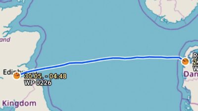 27.5./28.5., Sonntag/Montag, 13/14. Tag: 8:17 Leinen los, mit Motor in der Fahrrinne, Segel nach 2,5sm setzen – alles bei Sonne >> mehr
