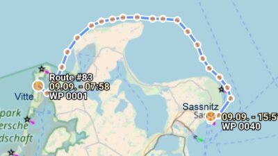 10.9., Dienstag, 119. Tag: Letzte Etappe auf der Ostsee. Saßnitz im Sonnenschein, später ist es bedeckt. Mit 11kn S-Wind können >> mehr