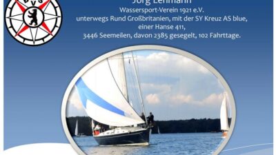 Vom Berliner Seglerverband gab es am 22.3.2019 zum Fahrtenseglerabend am Stößensee die Goldmedaille in der Kategorie See. Am 23.3. wieder >> mehr