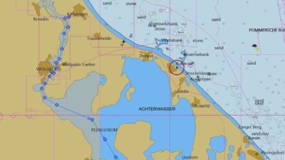 7.9.: Wieder haben wir die Zeit des Ablegens nach dem Zeitpunkt der Brückenöffnung gelegt, die Brücke in Wolgast öffnet 12:45. >> mehr